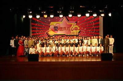 晚会结束后,校领导及其他部门领导走上舞台,与全体演职人员握手并合影留念。