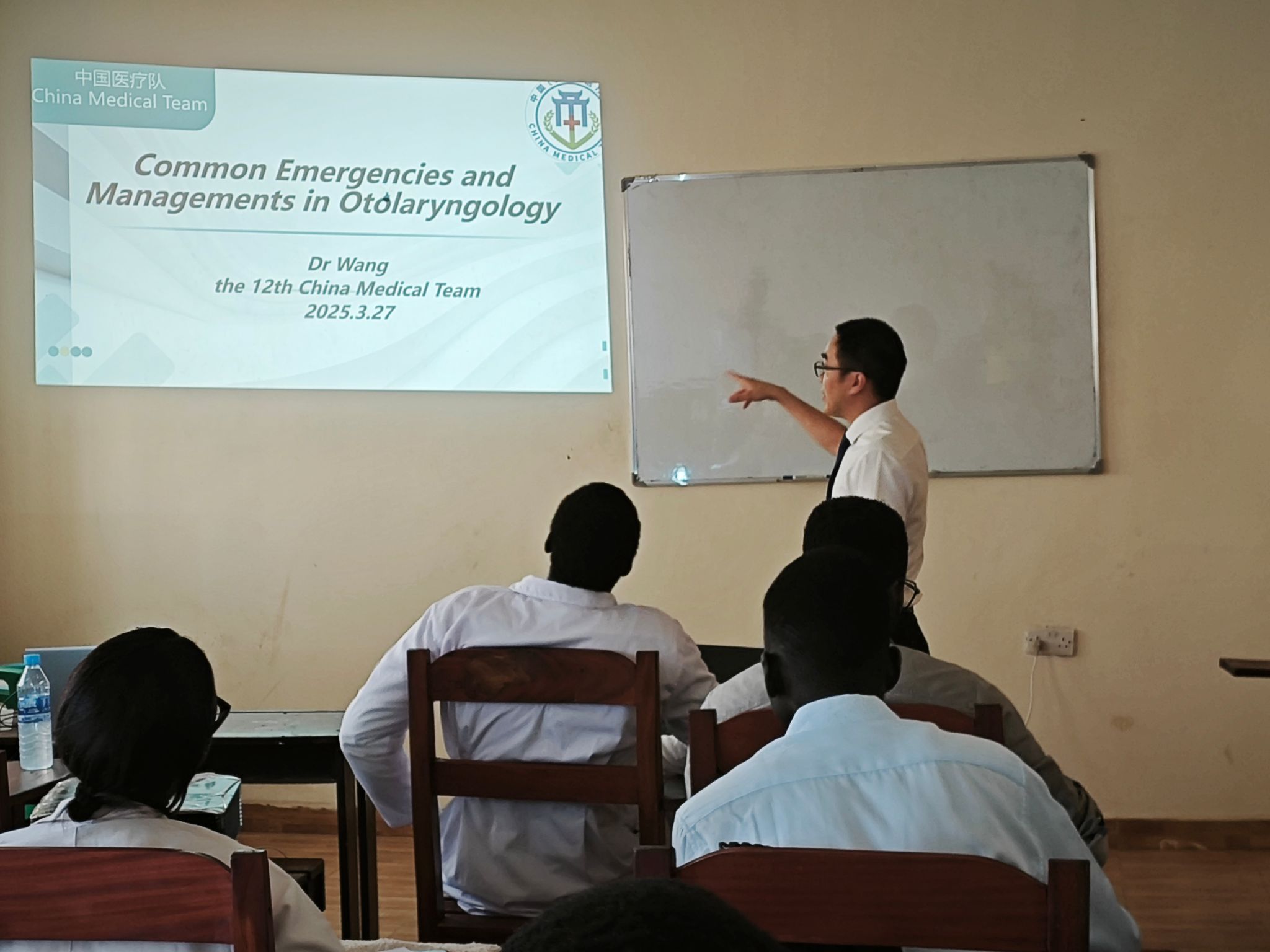 近日,受南苏丹阿伊大学医学院邀请,中国(安徽)第十二批援南苏丹医疗队队员、来自我校第一附属医院的王文节、王传喜、谷绍飞走进阿伊大学校园,为该校师生开展为期三个月的医学教学活动。3名医疗队员立足本专业,精心准备课程,通过理论讲解、实践操作、案例分析、情景展现等方式讲授医学知识,传播先进医学理念。