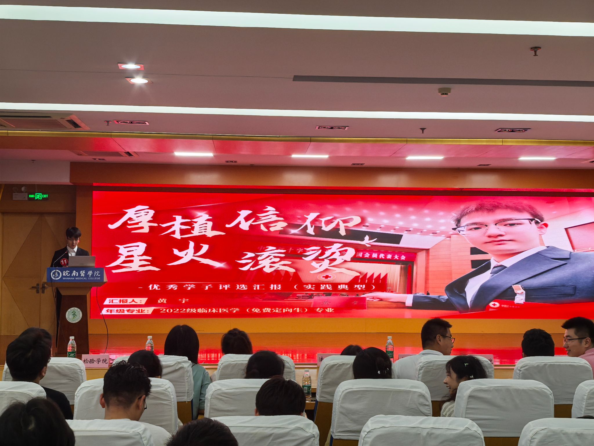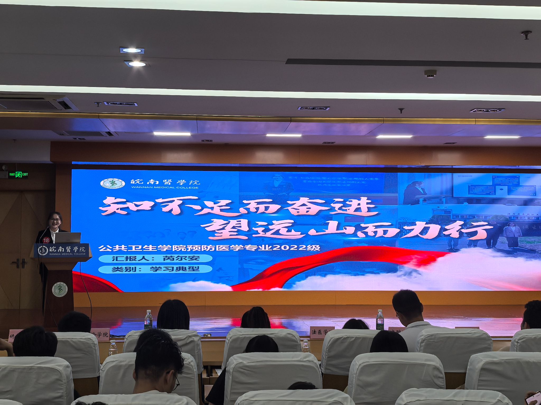 汇报现场,聚光灯下20名选手依次登台,通过PPT展示、主题演讲、舞台表演等多种形式,声情并茂地分享了他们的成长历程、奋斗故事、心路感悟与未来展望,亮点纷呈、催人奋进,展示了勤奋好学、全面发展、实践创新、自立自强、无私奉献的精神面貌。最终,吴蓓(法医学院)、邓奕(药学院)、黄宇(临床医学院)、纪阳斌(麻醉学院)、芮尔安(公共卫生学院)、王雨桐(临床医学院)、章译文(医学影像学院)、周鑫成(麻醉学院)、李苏慧(药学院)、胡静怡(口腔医学院)等10名同学凭借优异表现,拟获2024年度十大“优秀学子”荣誉称号。