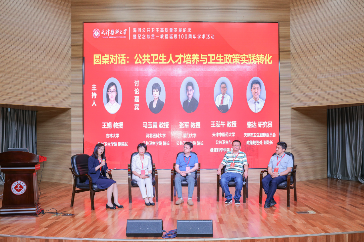 本次论坛还针对学术前沿专题和人才培养与教育教学专题设置两场圆桌对话。中南大学胡国清教授、山西医科大学王彤教授、清华大学黄存瑞教授参加学术前沿专题板块圆桌对话;厦门大学张军教授、河北医科大学马玉霞教授、天津中医药大学王泓午教授、天津市卫健委政策规划处副处长骆达参加了人才培养与教育教学专题圆桌对话。各位专家学者各抒己见,就如何实现公共卫生高质量发展等问题进行了深入交流。两场圆桌对话分别由华中科技大学王超龙教授和吉林大学公共卫生学院副院长王娟教授主持。