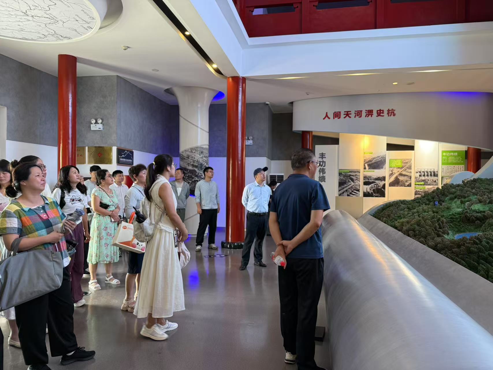 活动中,教职工们走进许继慎纪念馆、苏家埠战役陈列馆,革命先辈许继慎将军的英勇事迹与崇高精神、苏家埠战役的激烈鏖战,通过详实的史料鲜活地呈现在大家眼前。馆内陈列的珍贵文物、历史照片以及生动的文字介绍,仿佛将大家带回到那段波澜壮阔的革命岁月,红色印记与历史回响直击心灵。教职工们还相继探访了横排头水利枢纽、龙河口水库纪念馆及佛子岭水库。这些水利工程不仅是人类改造自然的智慧结晶,更镌刻着艰苦奋斗、无私奉献的精神密码。横排头水利枢纽气势恢宏,在防洪、灌溉、航运等方面发挥重要作用。“人间天河”淠史杭、龙河口水库纪念馆内,通过各种展示手段,生动地展现了当年建设者们肩挑背扛、不畏艰难建设水库的场景。佛子岭水库作为新中国成立初期自行设计、施工的大型水利工程,其建设过程中的艰辛与不易,让每一位教职工都深受触动。