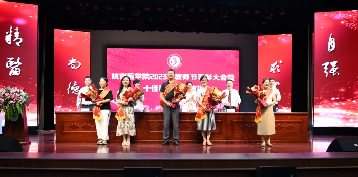 在首届“十佳教师”颁奖典礼上,参会人员共同观看了“十佳教师”无私奉献、诲人不倦的事迹视频,听取了“十佳教师”情真意切、感人肺腑的获奖感言。视频呈现出的一个个平凡而感动的瞬间,一句句真挚且温暖的话语,诠释了“十佳教师”一丝不苟的治学精神和潜心育人的师者风范,他们爱岗敬业的精神和以生为本的情怀深深感染了现场的每一位观众。在观众的热烈掌声中,校领导依次上台为“十佳教师”颁奖并合影留念。