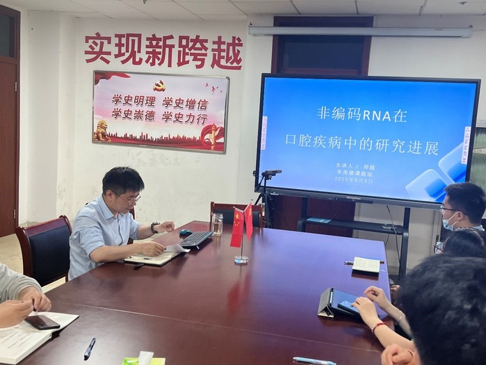 邓超博士以“非编码RNA在口腔相关疾病中的研究进展”为题,介绍了非编码RNA的分类及其功能,以及非编码RNA在口腔多种疾病中的研究进展。同时,他结合自己在研的circRNA调控口腔鳞状细胞癌的发生发展方面的研究,分享了研究思路、方法技术、目前研究成果及未来面临的挑战和机遇。整场报告思路清晰、精彩生动,师生讨论热烈,交流融洽。