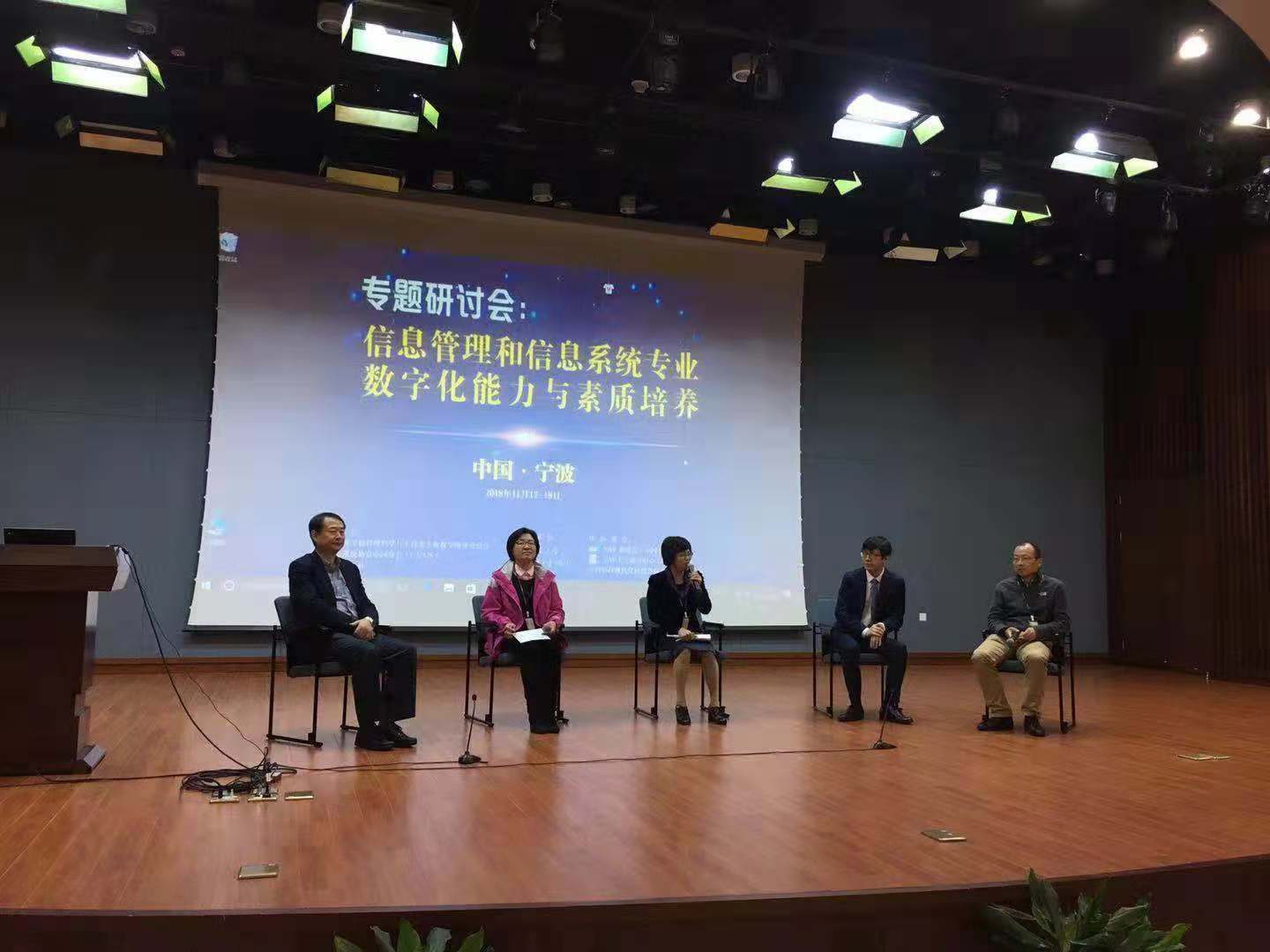 论坛最后以信息管理与信息系统专业数字化能力与素质培养为主题,就信息管理与信息系统专业建设与人才培养问题进行开放式Panel研讨,研讨会由复旦大学管理学院党委书记黄丽华教授主持,北京信息科技大学教务处处长王兴芬教授、首都经济贸易大学信息学院牛东来教授、北京信息科技大学信息管理学院信息系统系主任李楠副教授、南方报业集团CIO何崑等参与讨论。各位专家根据自己的研究领域和教学、实践经验,分别就信管专业的认识、与其他专业的联系、与需求结合的人才培养、企业的需求等进行交流。