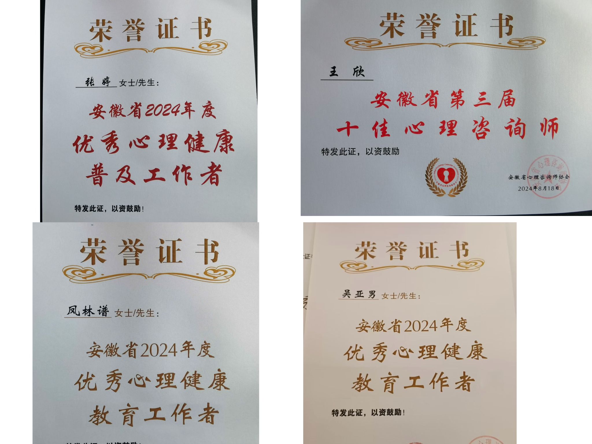 会议以“新时代·心世界·新业绩·赋能职业发展”为核心议题,旨在深化心理咨询师之间的沟通与合作,共同推动我省心理咨询行业的繁荣发展。大会表彰了本年度心理健康教育工作中做出突出成绩的先进集体和个人。经过严格评选,我校大学生心理健康教育与咨询中心获2024年度安徽省优秀心理健康教育工作集体称号,人文与管理学院心理学教研室获优秀社会心理服务工作集体称号,省人文重点研究基地负责人张婷获优秀心理健康普及工作者称号,校心理中心专职心理咨询师吴亚男、心理学教研室副主任凤林谱获优秀心理健康教育工作者称号,心理学教研室副教授王欣获安徽省第三届十佳心理咨询师称号。
